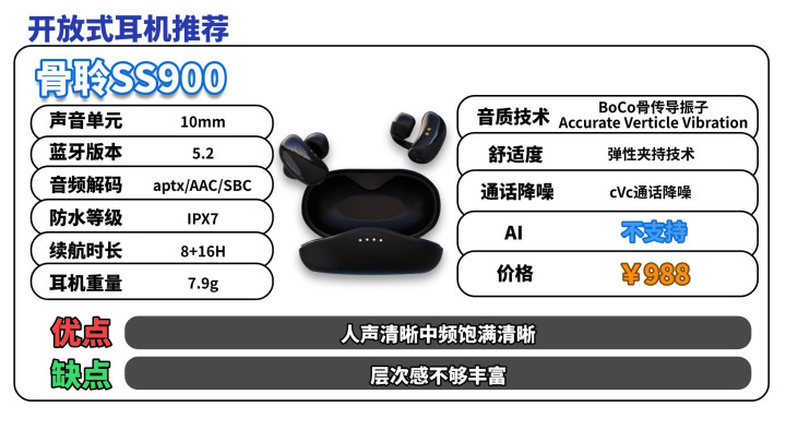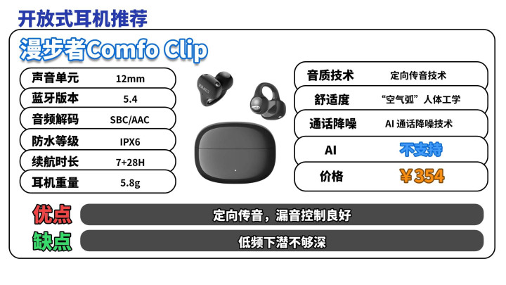 受骨传导技术本身的原理限制,在古典音乐这类对音质细腻程度要求严苛的场景中,它的表现稍不及动圈耳机,更适配注重产品功能性、有户外运动需求以及对使用安全性有较高要求的用户群体。