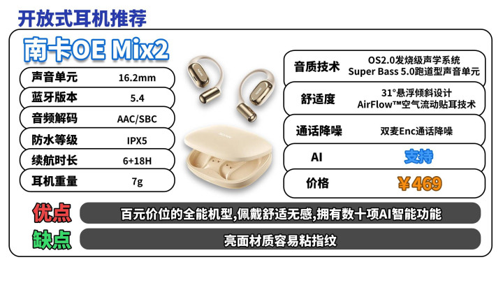 蓝牙耳机哪个品牌的音质好?1.南卡OE Mix2