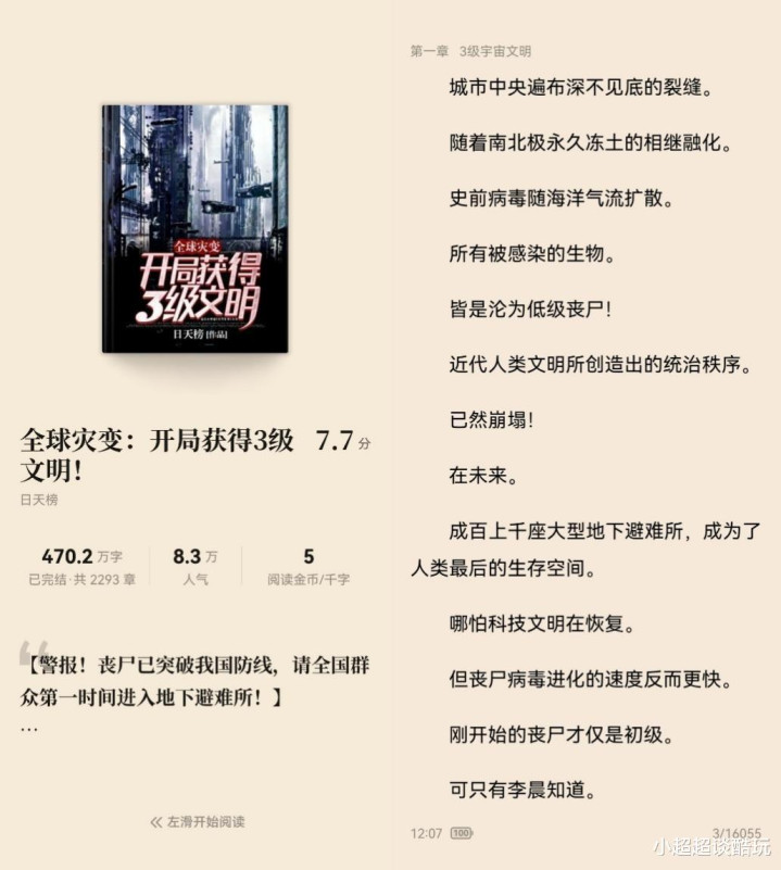 榜单特别懂咱们年轻人的口味,比如“年度网文-新书”就甄选了今年超火的网文新锐,不仅文笔不错,而且有作者的深度思考。比如《全球灾变:开局获得3级文明!》,书的开篇就是高能预警:丧尸已突破防线,世界陷入混乱。这要是搁以前,估计就是主角一路砍瓜切菜。但这本书不一样,主角手握3级文明的高科技系统,要在废墟之上重建秩序。不仅有那种手搓黑科技的爽感,更是在探讨绝境下人类文明该何去何从。